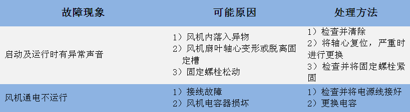 (2)风机:用干燥的长木棍顶一下每个风机的外壳,观察噪音是否变化,如发生变化说明风机有共振现象。