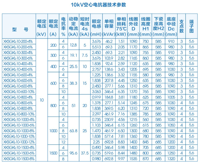 干式电抗器产品技术参数表